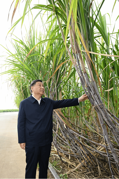 2023年12月14日,习近平总书记在广西来宾市国家现代农业产业园黄安优质“双高”糖料蔗基地考察。新华社记者 谢环驰 摄